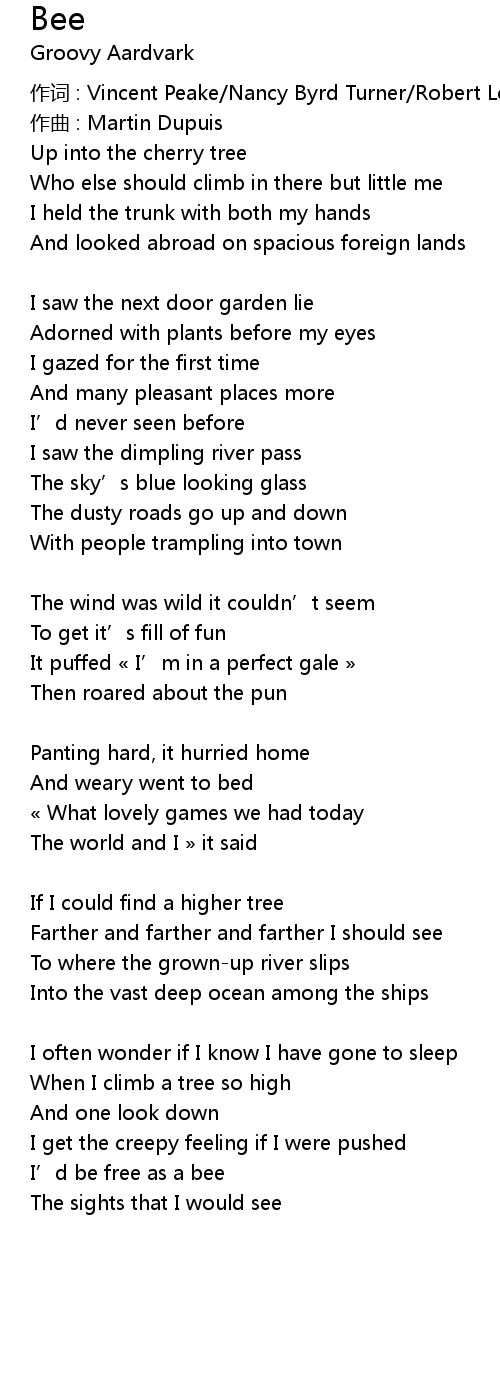 | 作词 : Vincent Peake/Nancy Byrd Turner/Robert Louis Stevenson | |