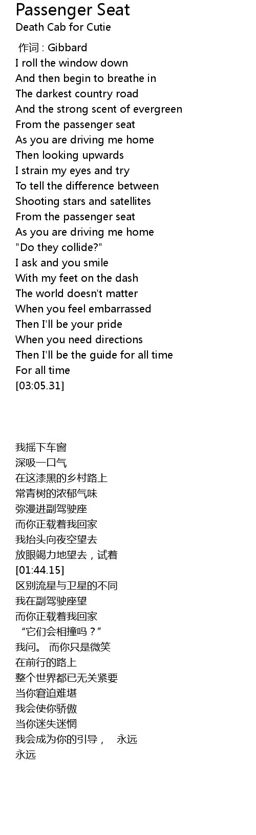 | Song | Passenger Seat |