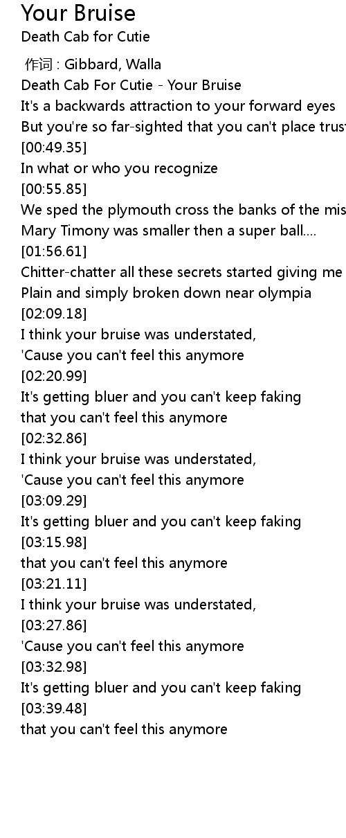 | [00:02.80] | Death Cab For Cutie Your Bruise |