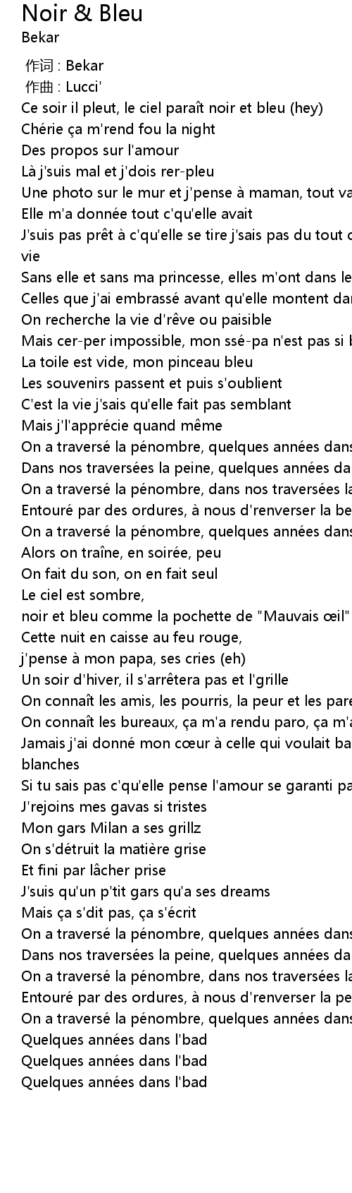 | [01:32.69] | noir et bleu comme la pochette de " Mauvais il" |