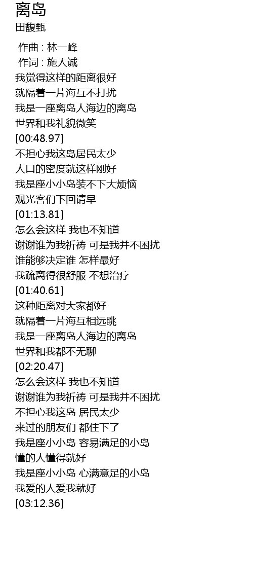 | [02:09.01] | 我是一座离岛人海边的离岛 |