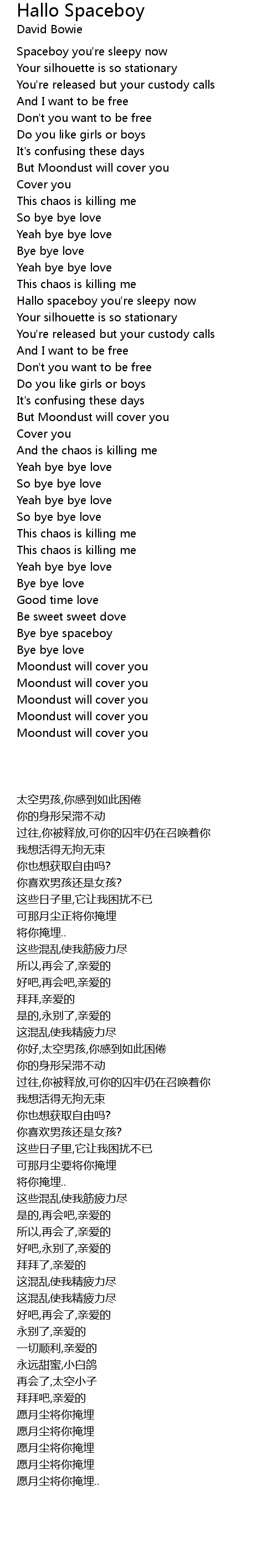 Hallo spaceboy you're sleepy now |