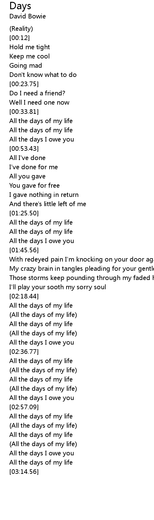 All the days I owe you |