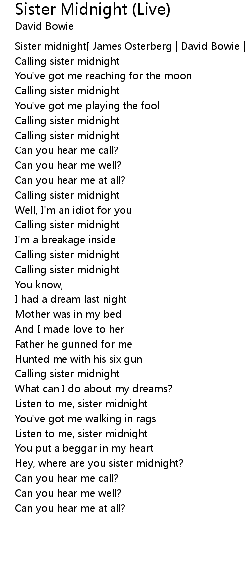 Sister midnight[ James Osterberg | David Bowie | Carlos Alomar ] |