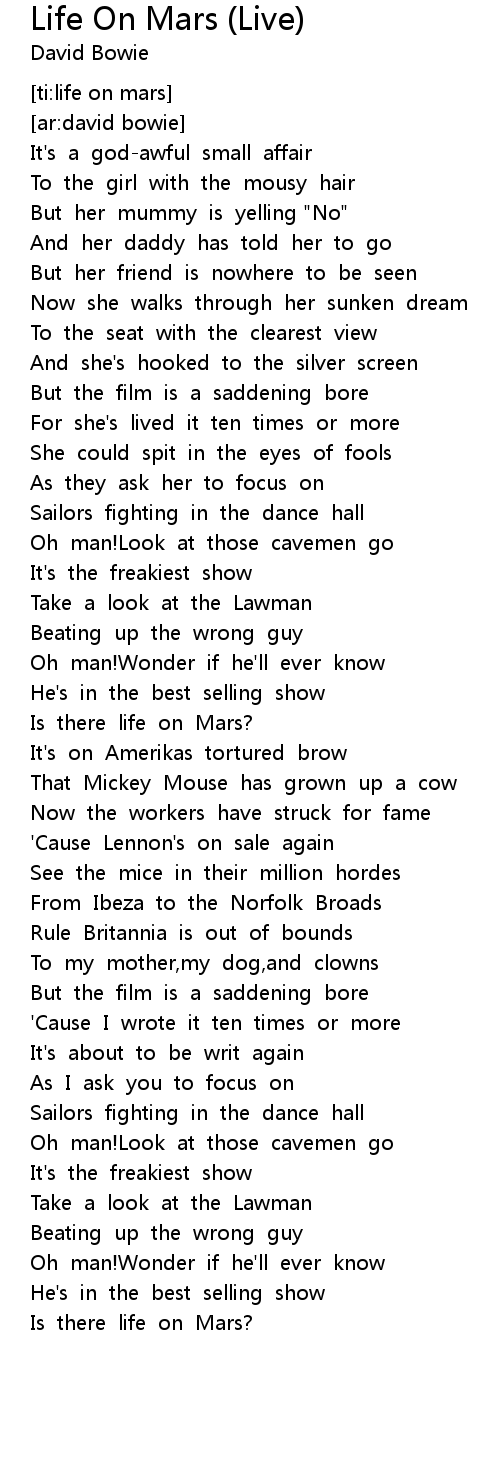 [ti:life on mars] |