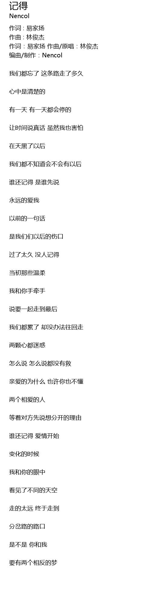 | 作词:易家扬 作曲/原唱:林俊杰 | |