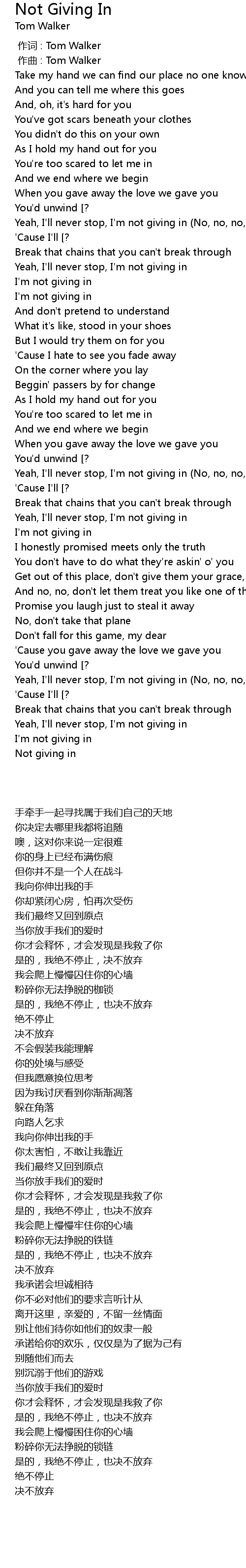 | [00:00.000] | 作词 : Tom Walker |