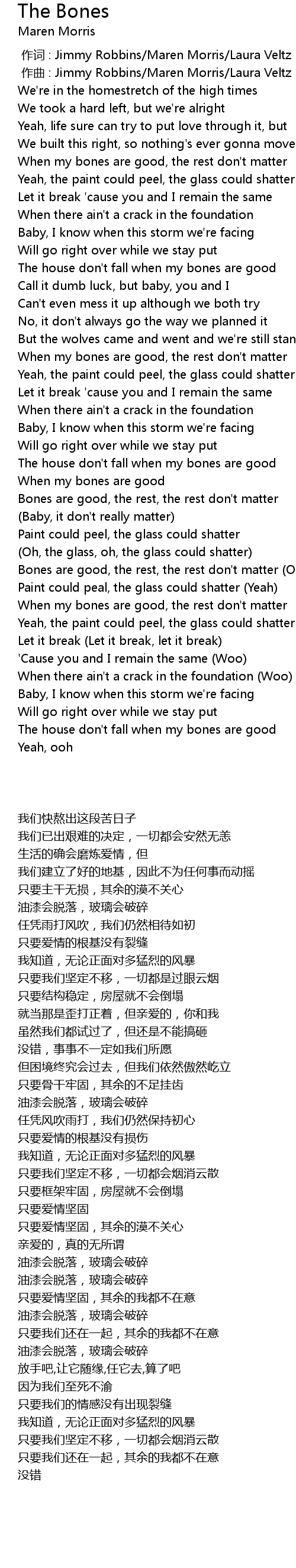 | [00:00.000] | 作词 : Jimmy Robbins/Maren Morris/Laura Veltz |