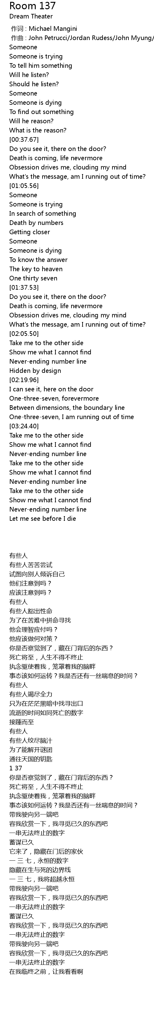 | [03:03.58] | One-three-seven, forevermore |