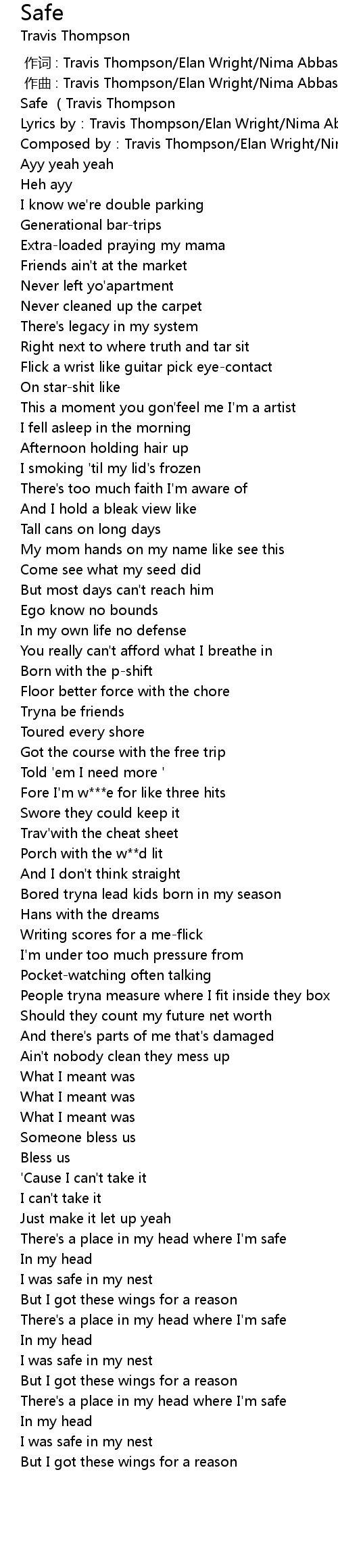 | [00:00.777] | Lyrics by: Travis Thompson Elan Wright Nima Abbassi Tyler Dopps |