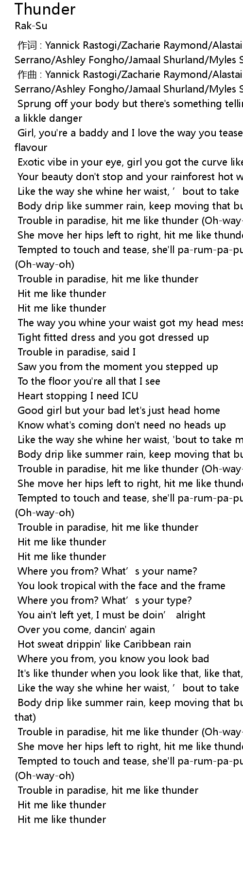 | [00:40.455] | She move her hips left to right, hit me like thunder Ohwayoh |