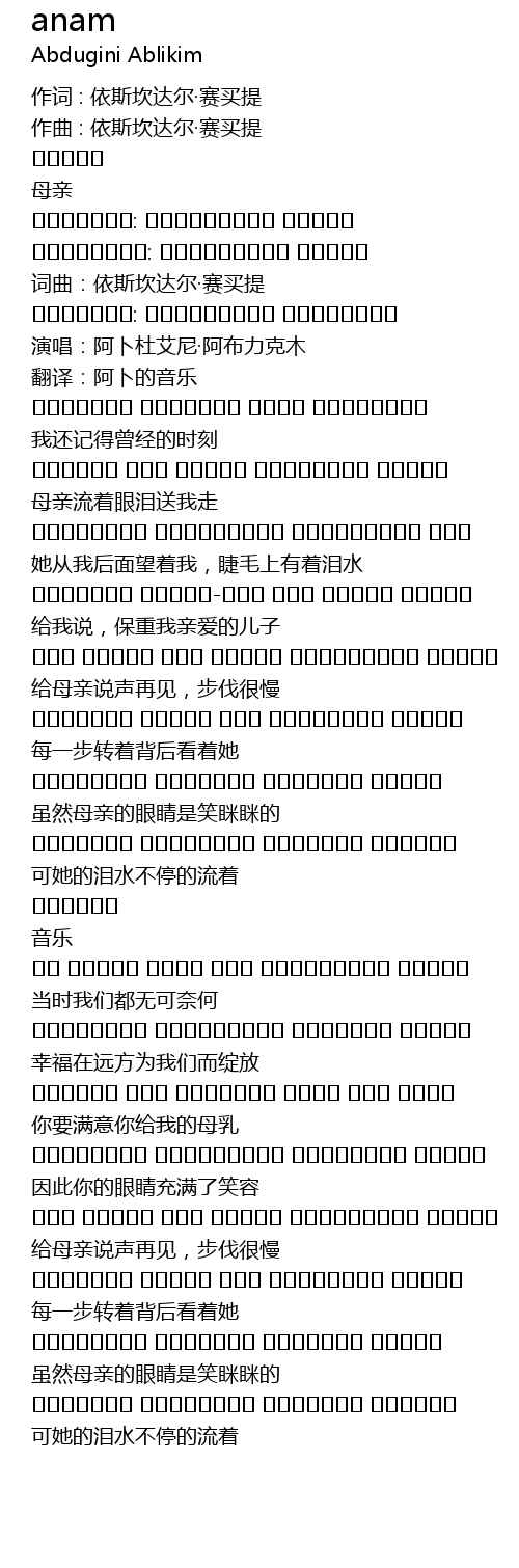| 演唱:阿卜杜艾尼·阿布力克木 | |