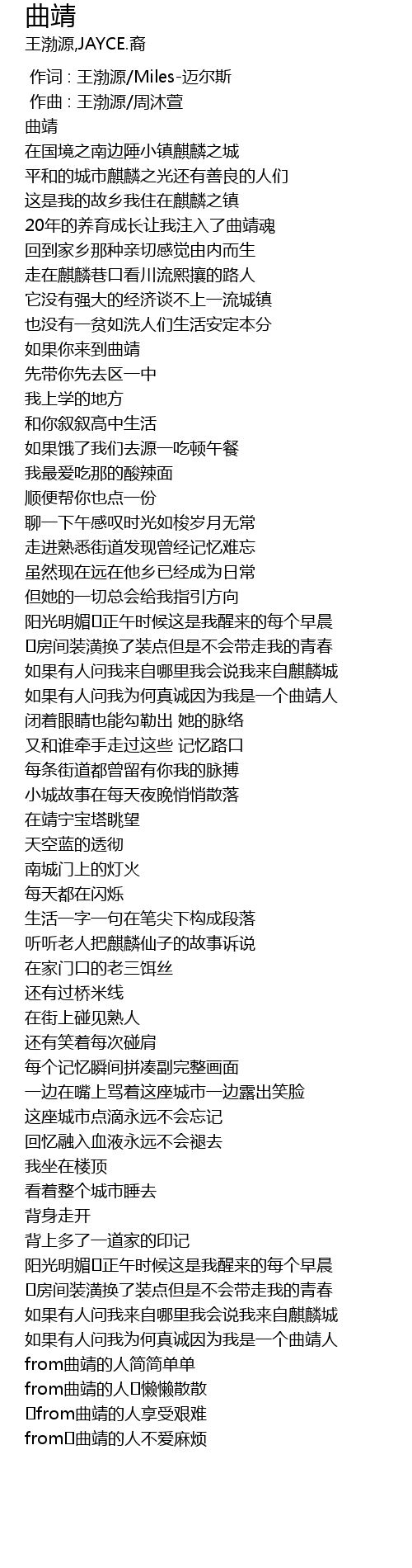 | [02:26.706] | 如果有人问我为何真诚因为我是一个曲靖人 |