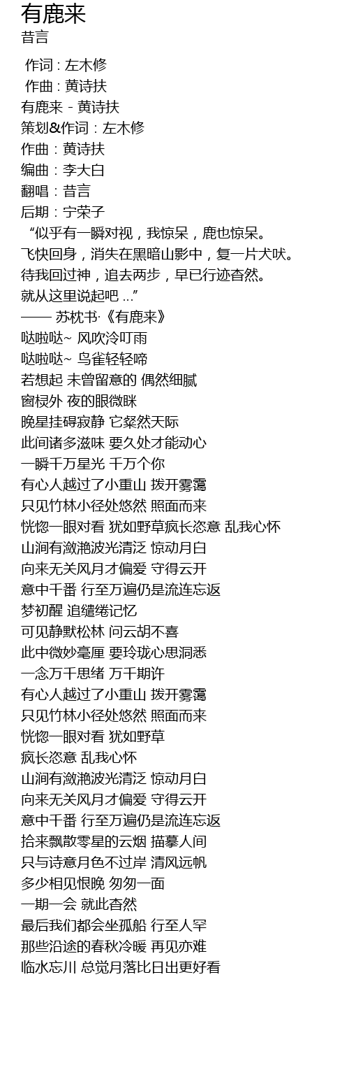 | [00:02.497] | 有鹿来 - 黄诗扶 |