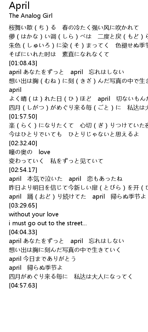 | [01:09.00] | april あなたをずっと april 忘れはしない |