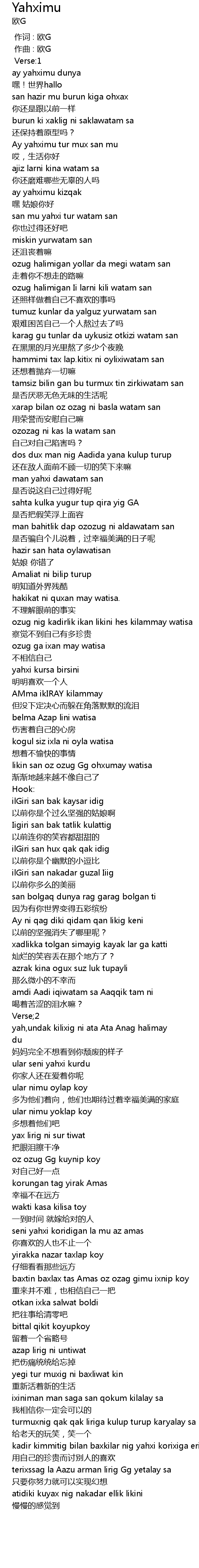 | [00:00.000] | 作词 : 欧G |