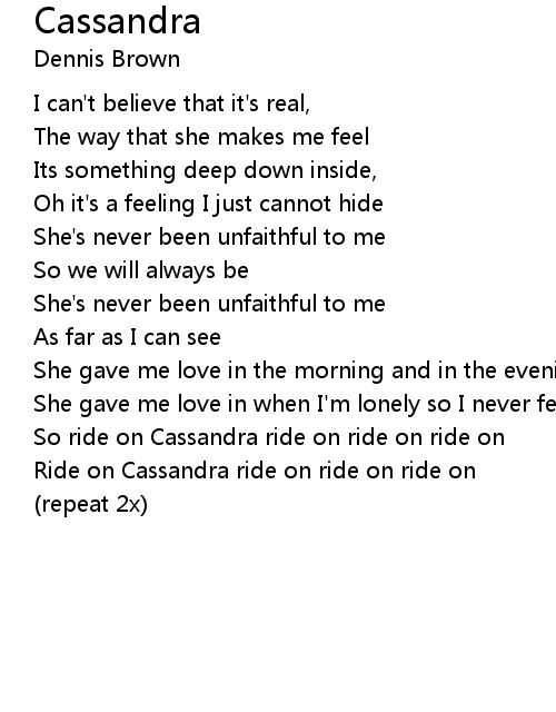 | Ride on Cassandra ride on ride on ride on | |