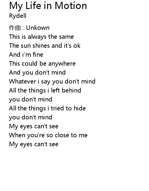 | Song | My Life in Motion |