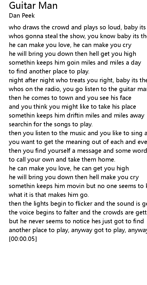 night after night who treats you right, baby its the guitar man |