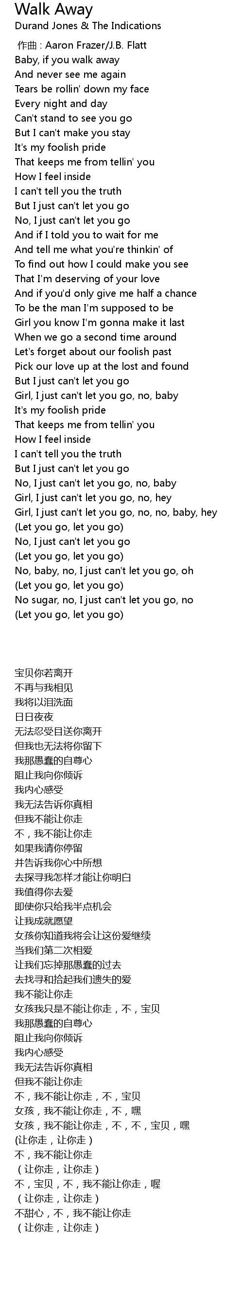 | [03:22.50] | No, baby, no, I just can' t let you go, oh |