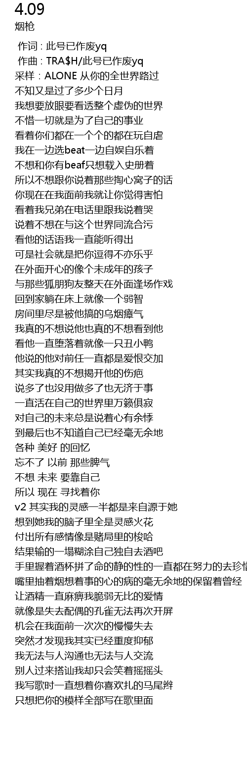 | [00:05.673] | 采样:ALONE 从你的全世界路过 |