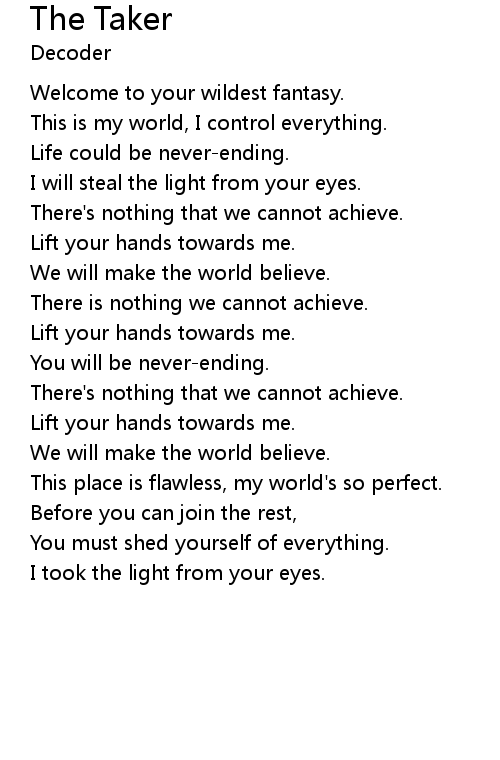 | I will steal the light from your eyes. | |