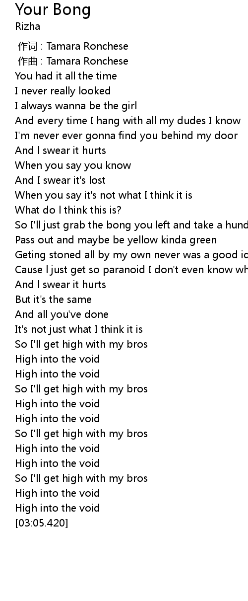 | [01:24.242] | So I'll just grab the bong you left and take a hundred hits |