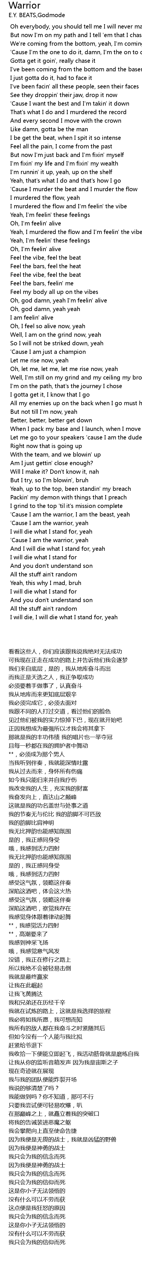 | [02:34.732] | 'Cause I am the warrior, yeah |