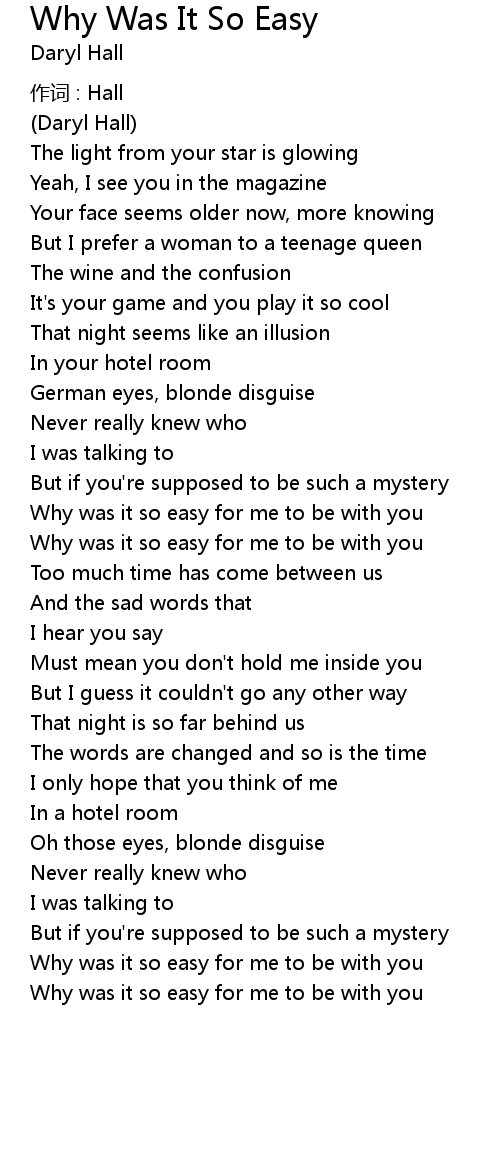 | Song | Why Was It So Easy |