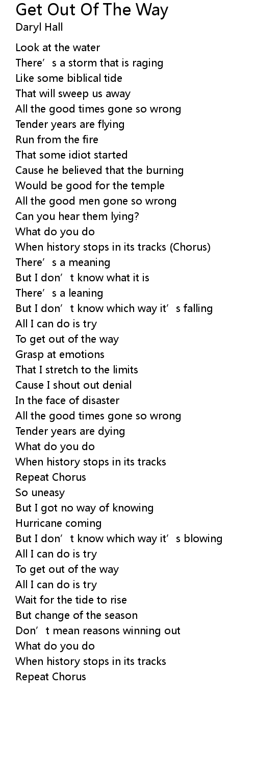 | Song | Get Out Of The Way |