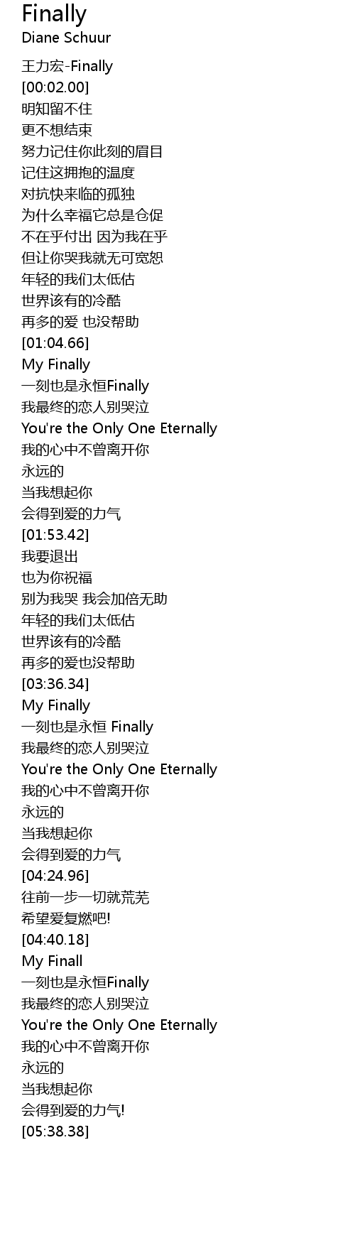| [04:51.98] | yi ke ye shi yong heng Finally |