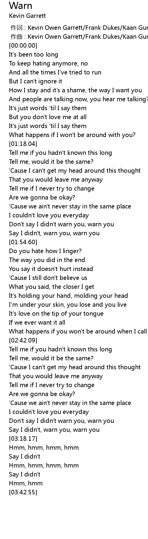 | [01:41.18] | Don' t say I didn' t warn you, warn you |