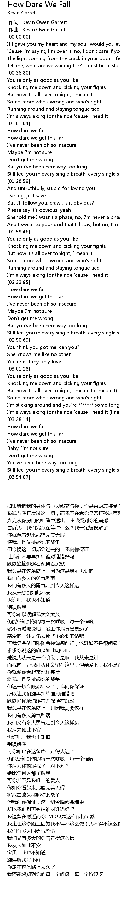 | [00:00.000] | 作词 : Kevin Owen Garrett |