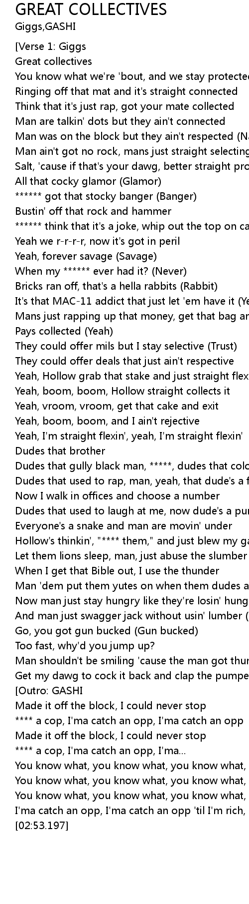 | [01:53.822] | Hollow's thinkin', "**** them," and just blew my ganja |