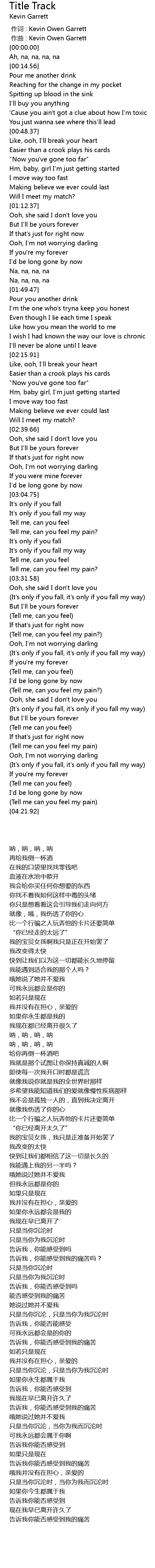 | [00:00.000] | 作词 : Kevin Owen Garrett |