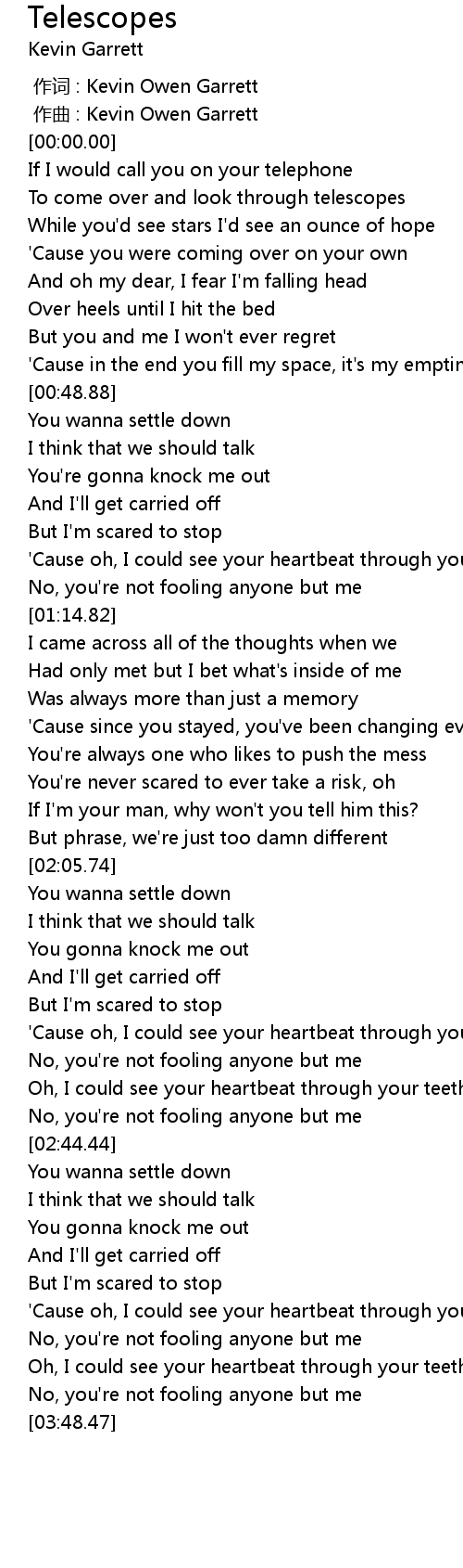 | [00:00.000] | 作词 : Kevin Owen Garrett |