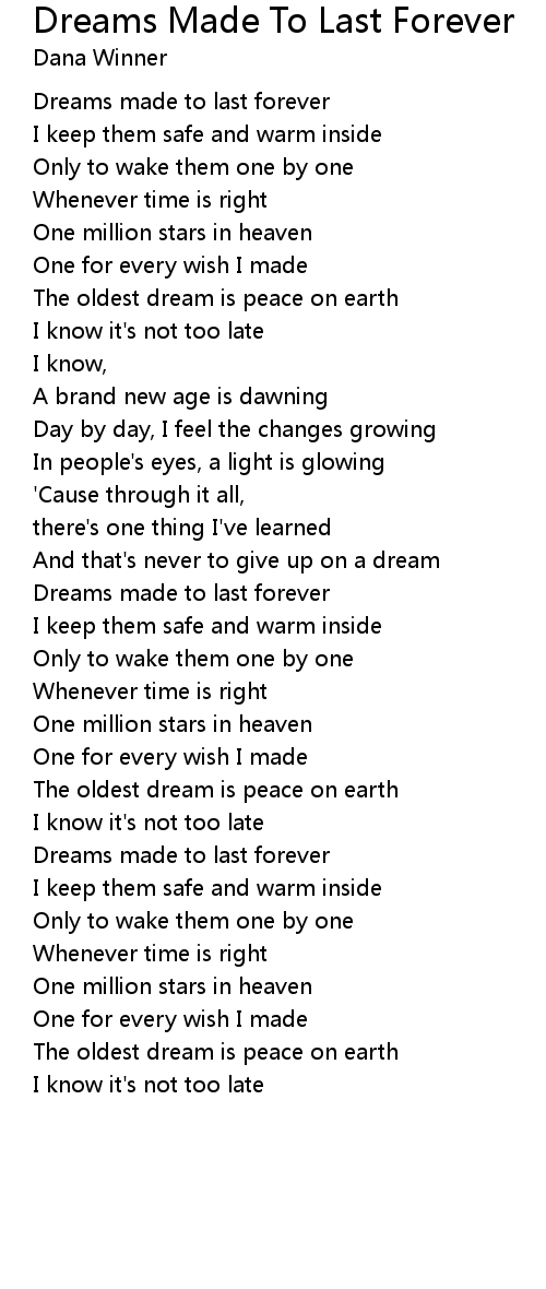 Dreams made to last forever |