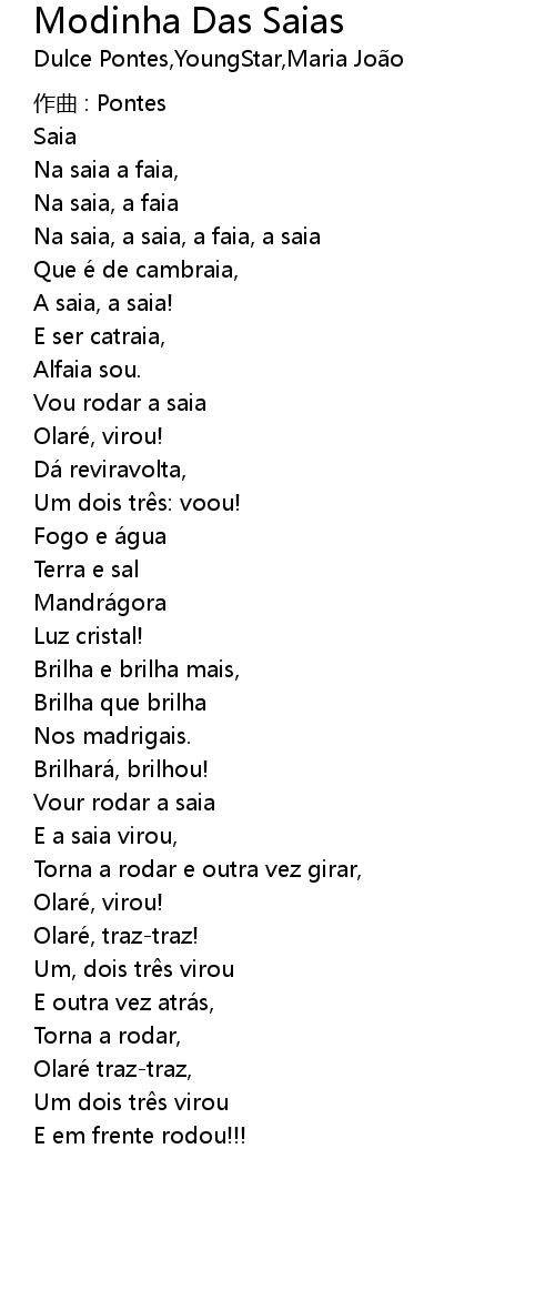 | Song | Modinha Das Saias |