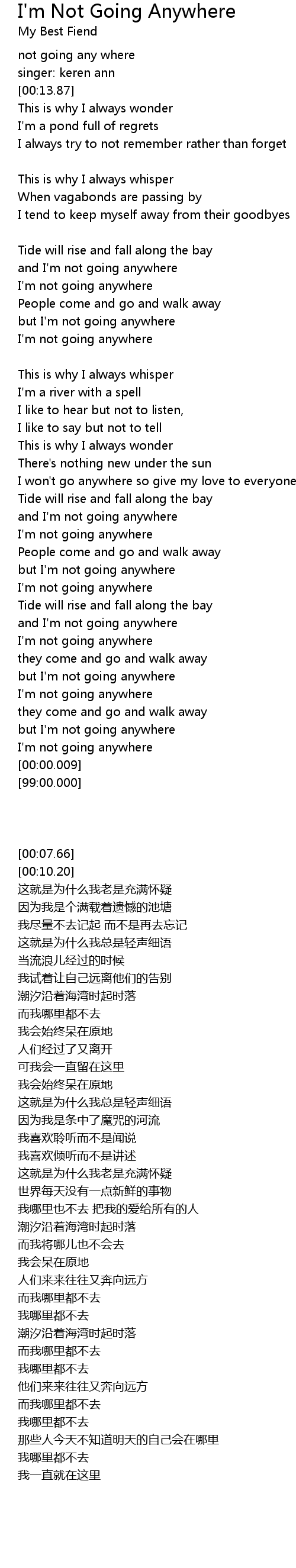 | [00:41.46] | I tend to keep myself away from their goodbyes |
