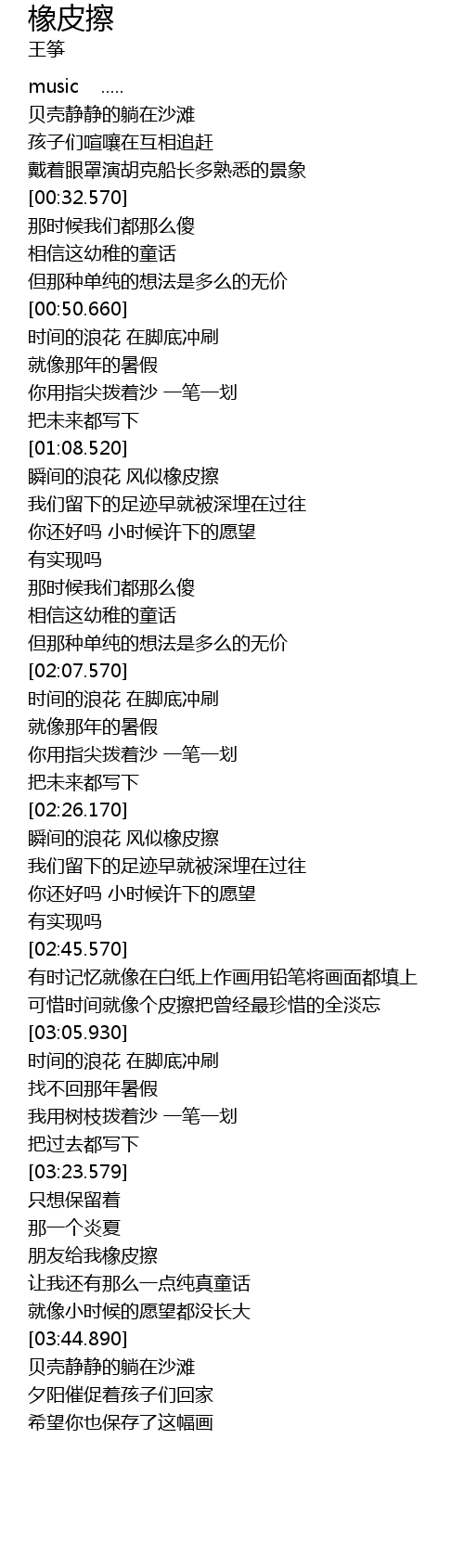| [02:26.650] | 瞬间的浪花 风似橡皮擦 |