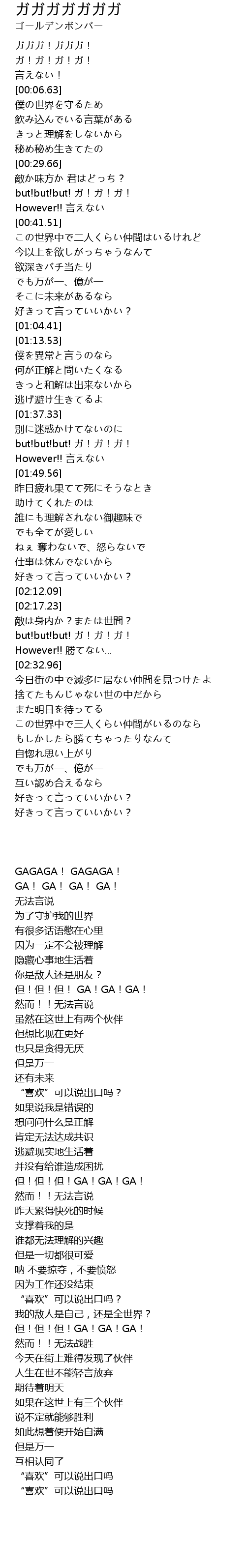 | [00:03.19] | ガ!ガ!ガ!ガ! |