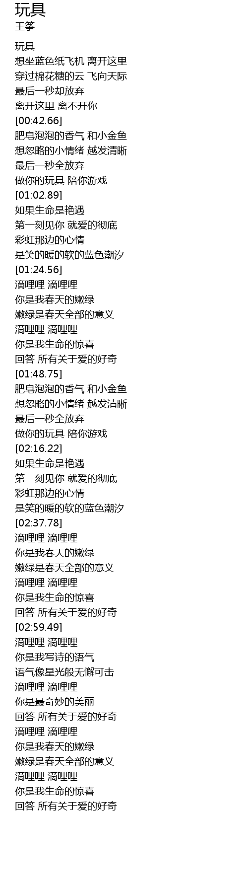 | [00:57.52] | 做你的玩具 陪你游戏 |