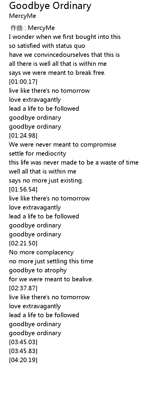 | [03:36.53] | goodbye ordinary |