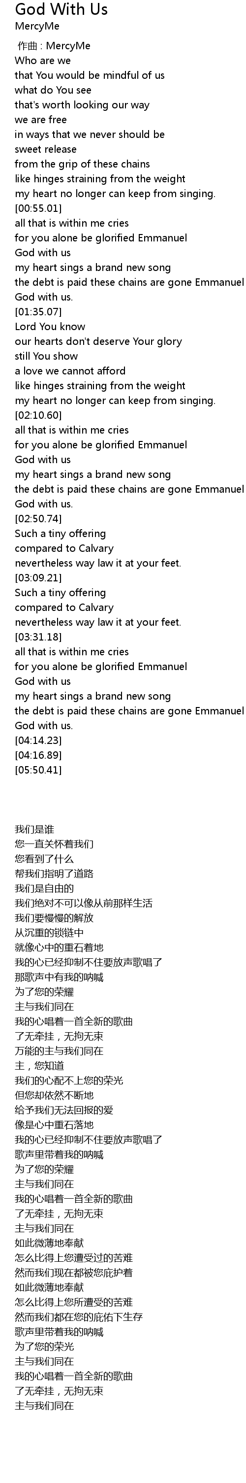 | [04:00.50] | the debt is paid these chains are gone Emmanuel |