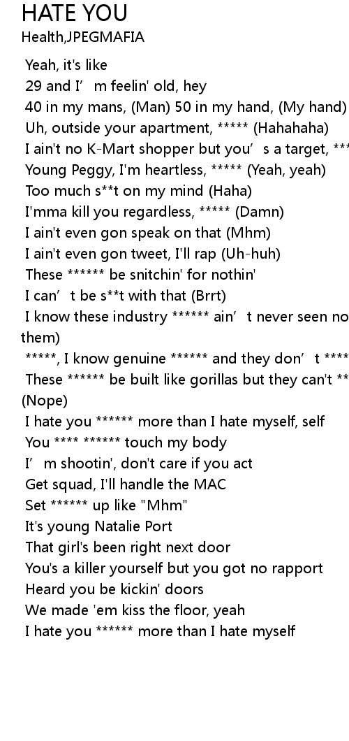 | [00:51.522] | I hate you ****** more than I hate myself, self |