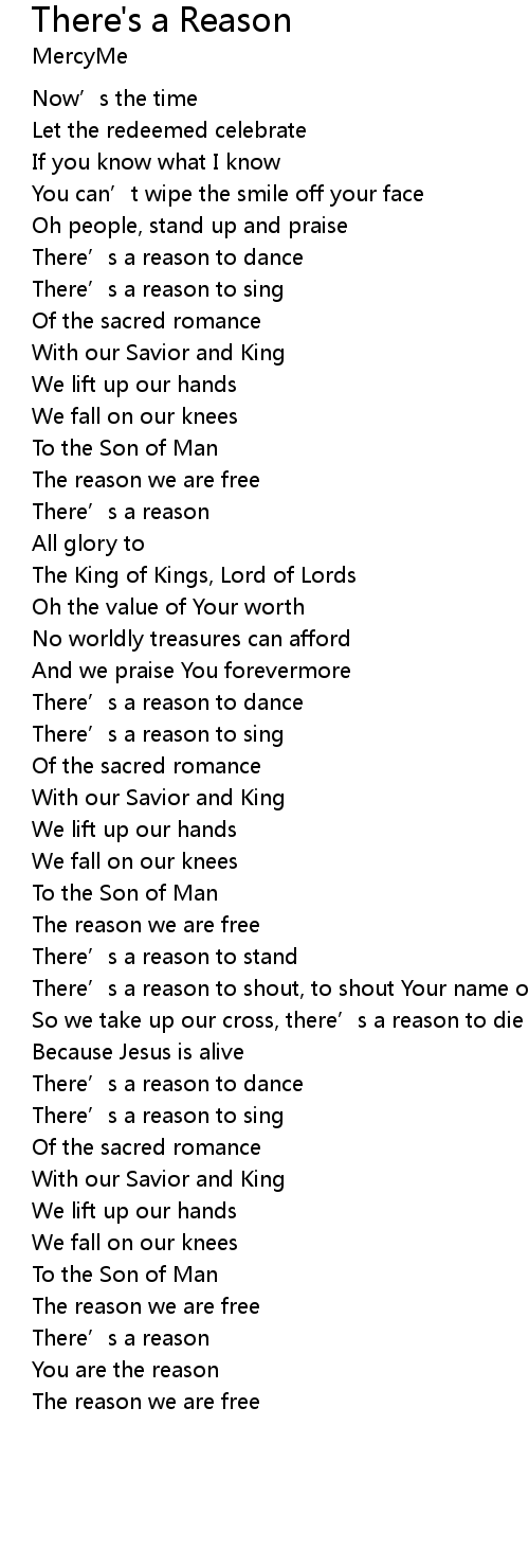 | [02:39.000] | So we take up our cross, there' s a reason to die |