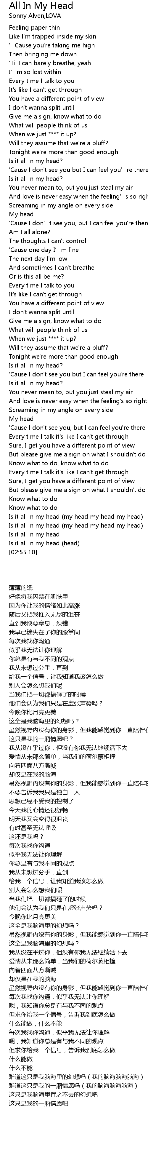 | [02:35.41] | Is it all in my head my head my head my head |