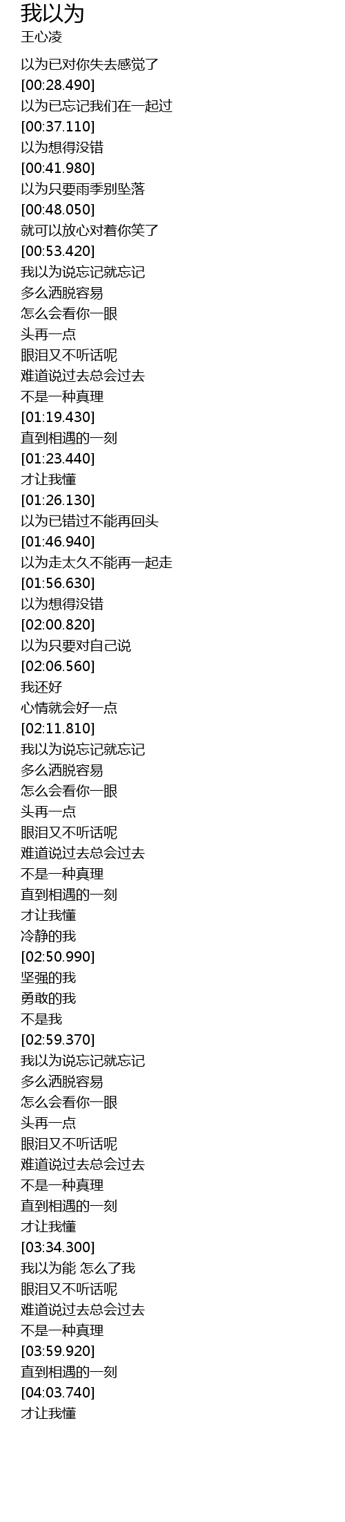 | [03:02.150] | wǒ yǐ wéi shuō wàng jì jiù wàng jì |