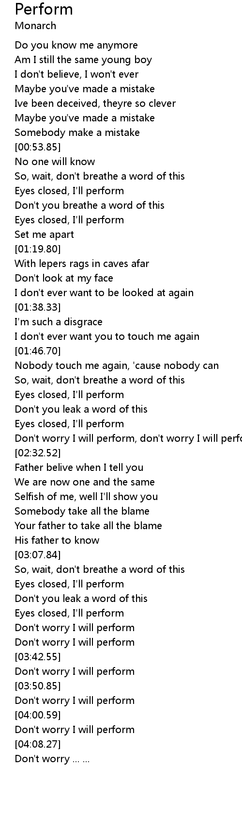 | [02:13.72] | Don't worry I will perform, don't worry I will perform |