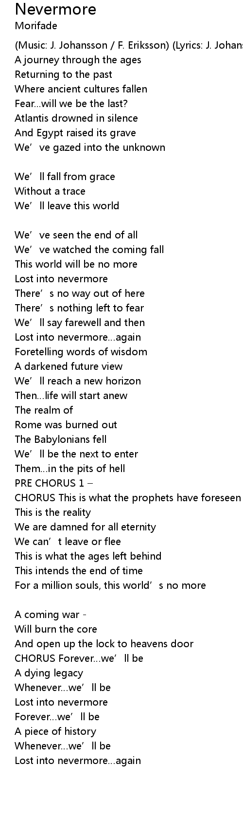 | Soon we’ll make a stand in nevermore [PRE CHORUS 2] | |